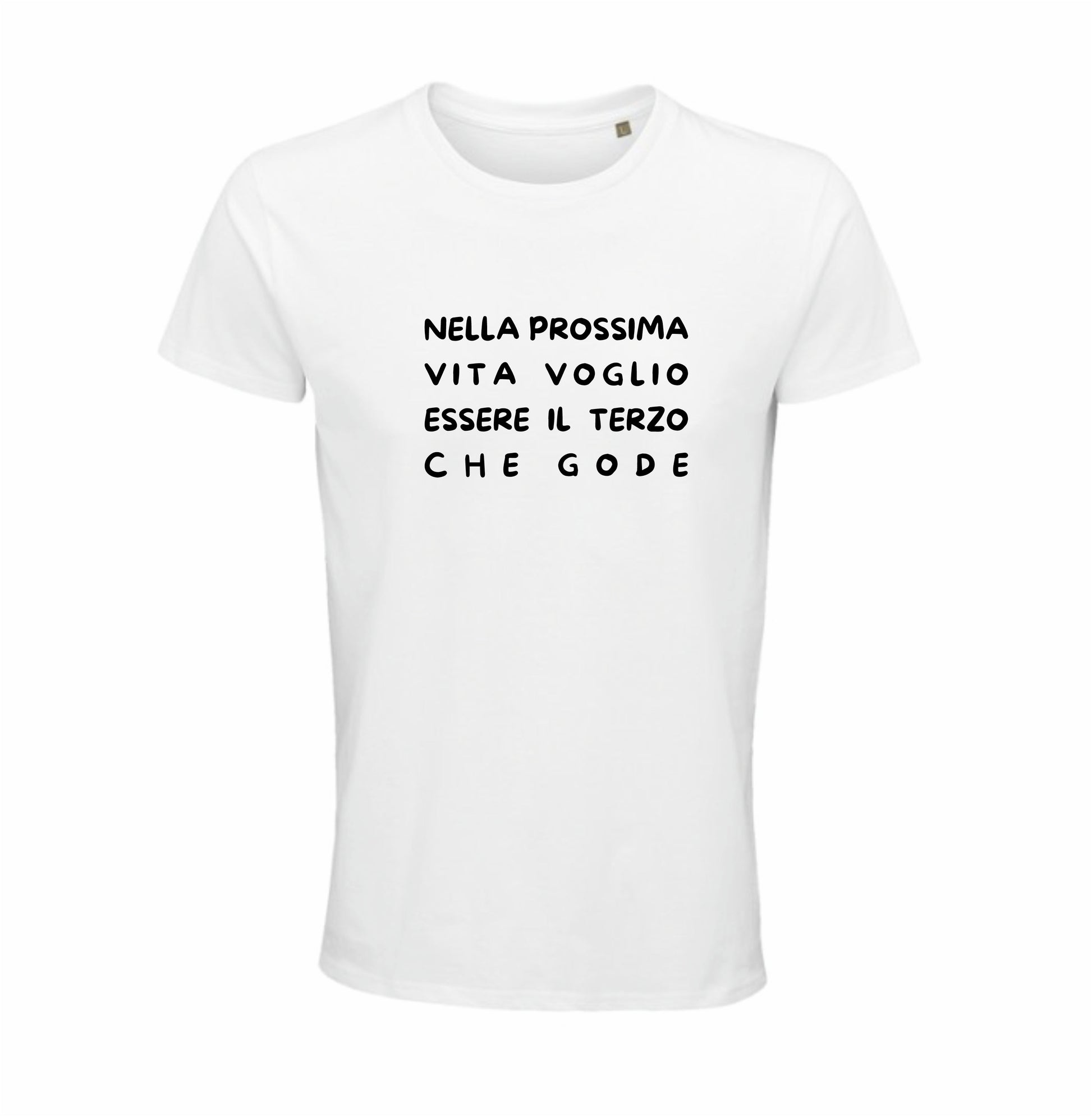 La maglietta “Nella prossima vita voglio essere il terzo che gode” è un inno ironico a tutti quelli che si fanno in quattro — e non godono mai.